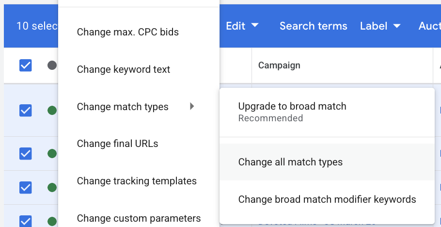 How to Change Keyword Match Type in Google Ads Fast
